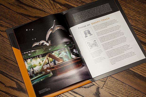 Conveying the dramatic effects of architectural lighting in print was the challenge when Altman came to us to create a high-end, glossy sales catalog for their newest equipment. The client wanted to combine informational aspects of a magazine with high-tech imagery.