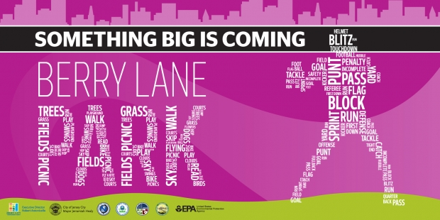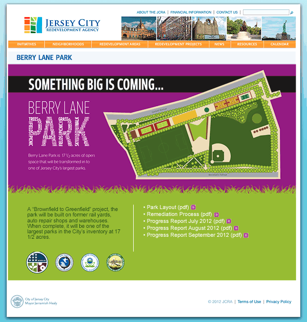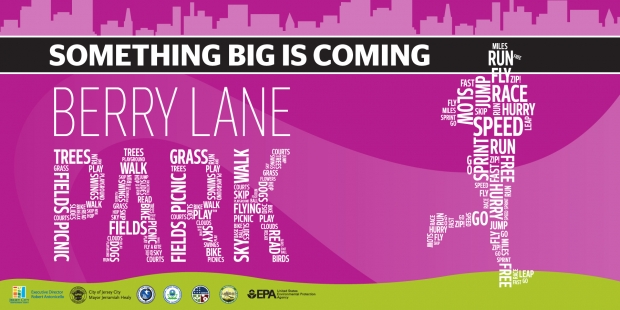 The Jersey City Redevelopment Agency asked us to create an identity for Berry Lane Park, a 17-acre park built on remediated land adjacent to the location of the former Morris Canal. It will be Jersey City's second largest park when completed.