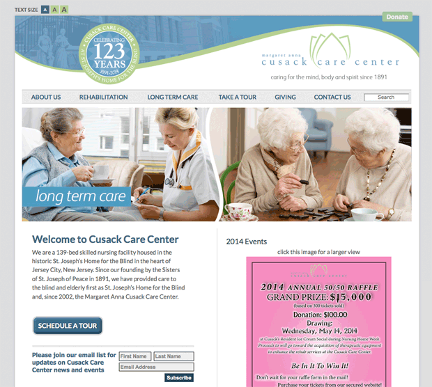 The Margaret Anna Cusack Care Center is considered to be one of Jersey City's oldest institutions offering skilled nursing for seniors and short-term rehabilitation services for patients. Working together since 2004, we have developed various marketing vehicles including: